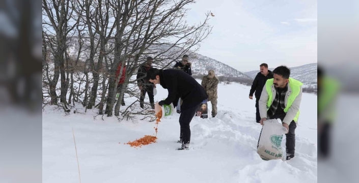 Yetkililer, zorlu kış koşullarında yaban hayvanlarının beslenmesine katkı sunmak amacıyla benzer çalışmaların süreceğini belirtti.