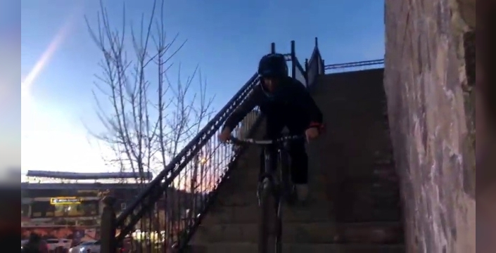 Gençlerin bisikletle merdivenler üzerindeki gösterisi nefes kesti