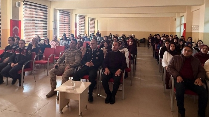 Etkinlikte jandarmanın görev ve sorumluluklarının yanı sıra jandarma olmanın sunduğu mesleki olanaklar, kariyer imkânları ve başvuru süreçleri hakkında bilgilendirmeler yapıldı. Toplumsal huzurun sağlanmasında gençlerin rolüne dikkat çekilirken, öğrenciler Yarbay Ünal YAĞMURKAYA’ya merak ettikleri soruları yöneltme fırsatı buldu.