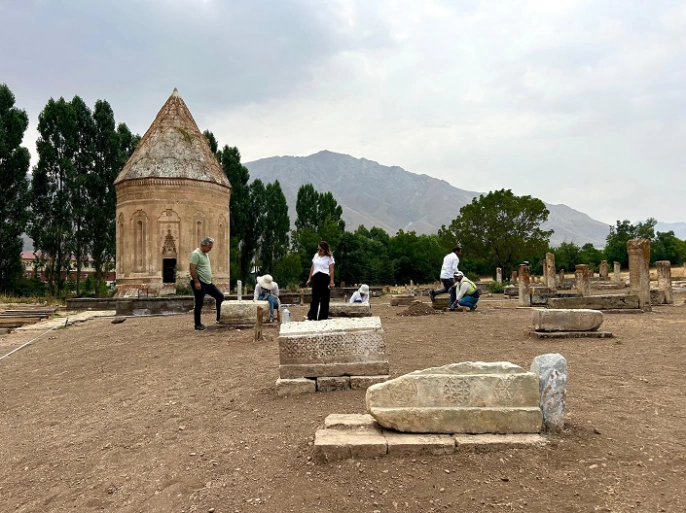 Konuya ilişkin konuşan Van YYÜ Sanat Tarihi Bölümü Öğretim Üyesi Doç. Dr. Ercan Çalış, çalışma alanının ‘Geleceğe Miras' projesine dahil edilmesiyle birlikte kapasitesinin artırıldığını belirtti. Bu yıl çalışmalara hızlı başladıklarını ve yaklaşık 50 adet mezar taşına müdahale edildiğini ifade eden Doç. Dr. Çalış, "Bunlardan 40 mezar taşının zemin blokaj işlemleri yapılırken, yaklaşık 10 taşın da liken temizliği yapıldı. Bu taşlar arasında 6 adet taş tamamıyla toprak altındayken gün yüzüne çıkarıldı. Yani daha önce pafta numarası olmayan, herhangi bir yerde göremeyeceğiniz bu taşlar, ilk defa 750 yıl sonra kelimenin tam anlamıyla gün ışığı görmüştür ve şu anda onlarla ilgili çalışmalarımız devam etmektedir. Tüm süreç içerisinde yapılan çalışmalara baktığımızda, 180 mezar taşının zemin blokajı yapılmıştır. Bunların dışında 85 taşın liken temizliği yapılmış, 15 taşın kırık parçaları birleştirilerek tümleme çalışmaları gerçekleştirilmiş ve 25 taşın da toprak altındayken gün yüzüne çıkarıldığı söylenebilir" dedi.