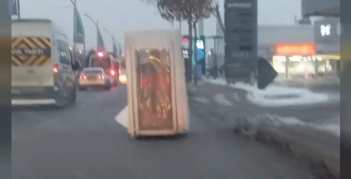 Yoldan geçen vatandaşların cep telefonlarıyla kaydettiği olayda sürücü, çevredeki şaşkın bakışlara aldırış etmeden yoluna devam ederken, ortaya çıkan manzara izleyenlere Sakar Şakir filmindeki "yürüyen dolap" sahnesini hatırlattı.