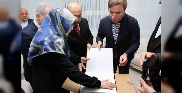 Erzincan Valisi Hamza Aydoğdu, görme engelli hafız Kader Macit’e Braille alfabesiyle yazılmış Kur’an-ı Kerim hediye etti.