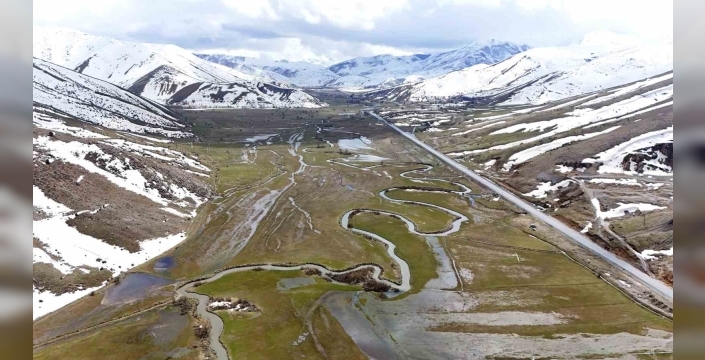 Bitlis’in Tatvan ile Hizan ilçeleri arasında bulunan Güzeldere Vadisi’nde uzayıp giden Güzeldere menderesleri havadan görüntülendi.