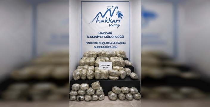 Hakkari’de emniyet ekipleri tarafından yapılan çalışmalar sonucu 64 kilogram skunk ele geçirilirken, 4 şüpheli yakalandı.