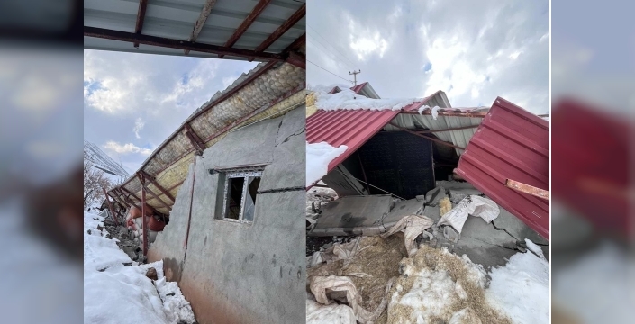 Hakkari’nin Çukurca ilçesinde çatısına biriken karın yüküne dayanamayan bir ahır çöktü.