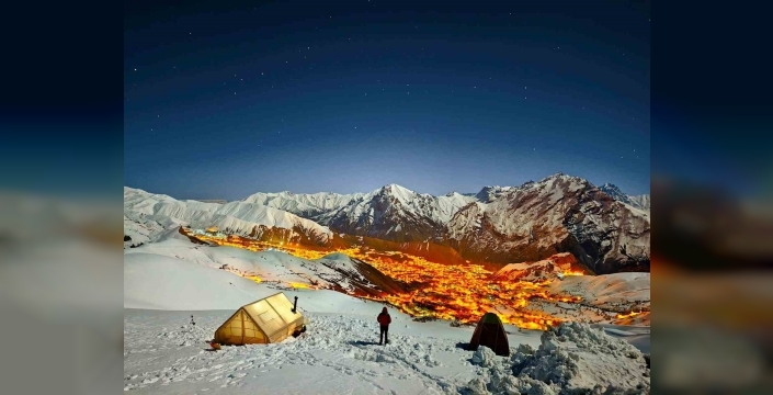 Gece saatlerinde kamp alanında yakılan ateş etrafında bir araya gelen katılımcılar, türküler söyleyip sohbet ederek keyifli anlar yaşadı. Soğuk hava şartlarına rağmen ekip ruhu ve dayanışma sayesinde unutulmaz bir gece geçirildi. Karla kaplı dağların ortasında kurulan kamp alanından görülen Hakkari şehir ışıkları da geceye ayrı bir güzellik kattı.