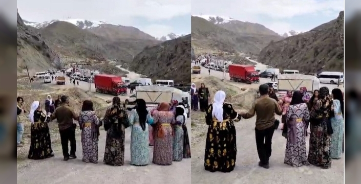 Van’da düzenlenecek bir nişan merasimine gitmek üzere Hakkari’den yola çıkan bir aile, Akçalı köyü yakınlarındaki kara yolunun heyelan nedeniyle trafiğe kapanması üzerine yolda beklemek zorunda kaldı. Uzun süre yolun açılmasını bekleyen araç konvoyundaki kadınlar ise moral bozmamak için halay çekerek zaman geçirdi. Renkli görüntülere sahne olan anlar, hem konvoyda bekleyenler hem de bölgeden geçen diğer vatandaşlar tarafından ilgiyle izlendi. Yaşanan eğlenceli anların sosyal medyada paylaşılan görüntüleri kısa sürede beğeni topladı.