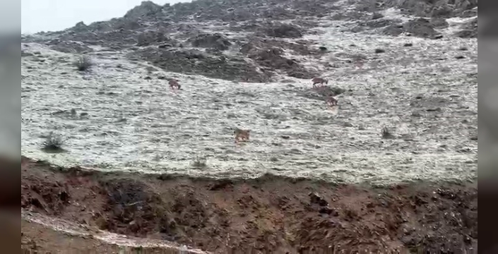 HAKKARİ (İHA) – Hakkari’de etkili olan sağanak ve kar yağışının yerini açık havaya bırakmasının ardından yiyecek arayan dağ keçisi sürüsü cep telefonlarıyla kaydedildi.