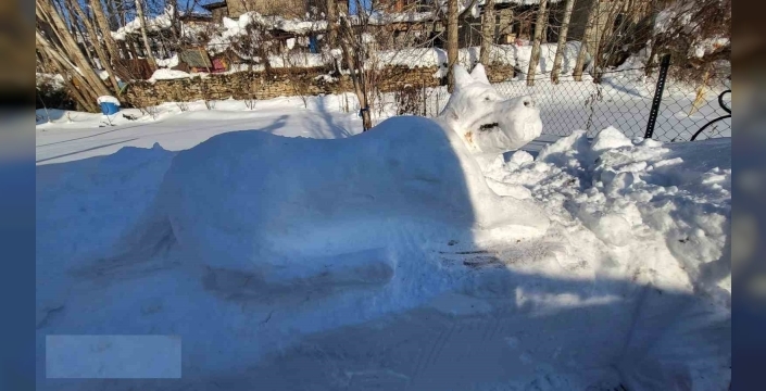 İşsiz olduğu dönemlerde evinin bahçesinde zaman geçiren Kayhan, kar yığınlarını kullanarak yaptığı kardan kangal köpeği figürüyle görenleri hayran bıraktı. Mahallede ilgi odağı haline gelen çalışma, cep telefonlarıyla görüntülendi.