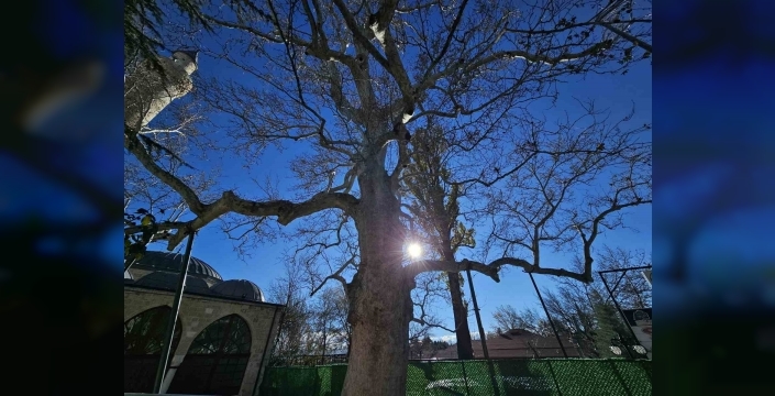 Kurşunlu Camii bahçesinde bulunan çınar ağacı, 300 yılı aşkın süredir zamana meydan okurken, kış aylarında da farklı bir güzelliğe bürünüyor.