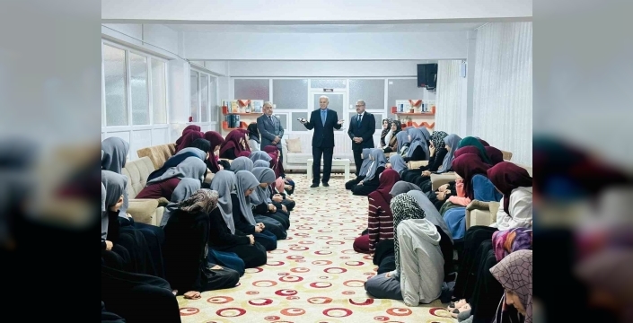 SERHED HABER- "1001 Hatim Dua Programı" için Erzurum’da bulunan DİB Başkan Yardımcısı Dr. Hazırlar, İl Müftüsü Yaşar Çapçı ve Palandöken İlçe Müftüsü Ahmet Gözcü ile beraber; Palandöken İlçe Müftülüğü’ne bağlı Yenişehir Yatılı Kız Kur’an Kursu’nda hafızlık eğitimi alan öğrencilerle buluştu.