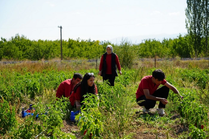 Mevsimine göre sebze yetiştiren öğrenciler hem çiftçilik mesleğinin inceliklerini öğreniyor hem de ek gelir elde ediyor. Öğrencilerin, haftanın 5 günü uygulama alanlarında ürettikleri organik sebzeler, uygun fiyata mahalleli tarafından alınıyor.