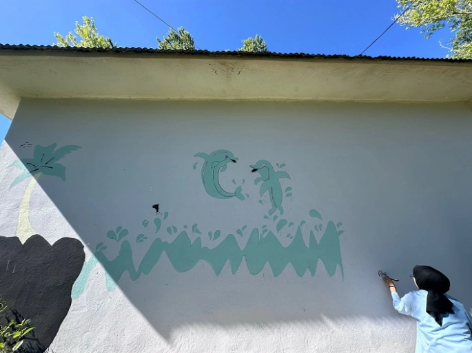 Okulun dış duvarını boyayan, küçük bakımlarını yapan öğrenciler, hediyeler dağıttıkları çocuklarla oyunlar oynadı, onlara ikramda bulundu.