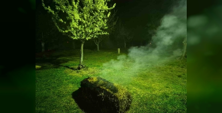 Meyve ağaçlarını dumanlama yöntemi ile soğuktan koruyan Töbet Turan meteoroloji sürekli takip ettiklerini belirterek, "Biz meyve ağaçlarıyla ilgilendiğimiz için hava durumunu meteorolojiden sürekli takip ediyoruz. Meteoroloji verilerine baktığımızda, son iki gün gece saat 02.00 ile sabah 06.00 arasında hava sıcaklığının -3 dereceye kadar düşeceğini gördük. Bu nedenle, daha önce babalarımızla birlikte uyguladığımız dumanlama yöntemini kendi meyve bahçemizde de uyguladık" dedi. Dumanlama yöntemi ile ağaçlarını soğuktan koruduklarını söyleyen Turan, "Yaklaşık 300 adet saman balyası getirdik. İlk gün 100 tanesini bahçeye dağıttık. Bahçede yaklaşık 500’e yakın anjelik ve kiraz ağacı bulunuyor. Gece saat 02.00’de samanları yaktık ve sabah 06.00’ya kadar başında bekledik. Duman tüm bahçeyi kapladı. Saat 06.00’dan sonra evimize gittik. Allah’ın izniyle şu ana kadar yaptığımız kontrollerde herhangi bir zarar görünmüyor" diye konuştu. Dumanlama sisteminin eski bir yöntem olduğunu dile getiren Turan, "Samanlar tamamen yandığında bahçede adeta bir bulut tabakası oluşuyor. Bu duman, ağaçların hem içinde hem de üstünde yoğunlaşıyor. Oluşan bu tabaka, soğuğu kesip kırıyor ve ortam sıcaklığını yaklaşık 3-4 derece artırıyor. Zaten bahçenin içine girildiğinde bu sıcaklık farkı açıkça hissedilebiliyor. Bilindiği gibi soğuk hava genellikle aşağıda birikir. Daha yukarıda, yaklaşık 7-8 metre yükseklikte hava daha ılıktır. Biz alttan verdiğimiz sıcaklıkla üstteki sıcak havayı buluşturuyoruz. Bu birleşme sayesinde bahçenin genel sıcaklığı 3-5 derece kadar artıyor ve don riski önemli ölçüde azaltılıyor" dedi.