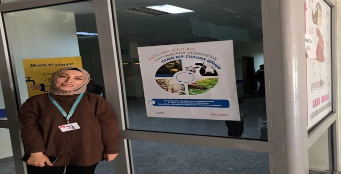 Asılan afişler hakkında bilgi veren Uzm. Dr. Ayşe Mutlu şu açıklamalarda bulundu: “Kist Hidatik Hastalığı, insanların iç organlarında kistler oluşturan bir hastalıktır. Genellikle köpeklerin dışkısıyla insanlara bulaşır. Parazit köpeklerin ince bağırsaklarında yaşar. Hastalık köpek dışkısı ile atılan yumurtalar ile insana bulaşır. İnsanlar bu yumurtaları çiğ tüketilen ve iyi yıkanmamış meyve ve sebzelerden, kirli içme sularından alırlar. İnsandan başka koyun, keçi, sığır ve manda gibi otla beslenen hayvanlar da yumurtaları alarak hastalanırlar. Bu kistleri içeren hayvan etleri ve sakatatlar, köpekler tarafından yenince parazit bağırsaklarda olgunlaşır. Parazitlerin belirli aralıklarla yumurtlayarak ana konakçı köpekler tarafından atılmasıyla enfeksiyon zinciri bir kısır döngüye dönüşür.