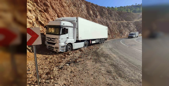 SERHED HABER - Kaza, sabah saatlerinde meydana geldi. Alınan bilgiye göre, Kemaliye'den İliç'e gitmekte olan tır, virajda sürücünün direksiyon hakimiyetini kaybetmesi üzerine yoldan çıkarak taşlık alana çarptı.