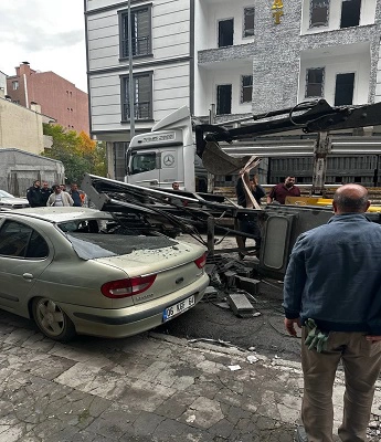 SERHED HABER - Olay, dün saat 16.45 sıralarında Koca Mustafa Paşa Caddesinde meydana geldi. İnşaata getirilen tuğlaları indirmek için şoför tır'ı inşaat önünde durdurdu. İnşaat alanı önünde park halinde olan araçlar mevcuttu. Forklift yardımıyla TIR dorsesindeki tuğlalar inşaat alanına taşınmaya başlandı. Forkliftle bir palet tuğla kaldırılırken, başka palet de hareket edip Forklift ile birlikte Rıdvan K.'nın otomobilinin üzerine devrildi.