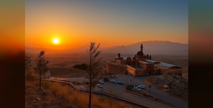 SERHED HABER- Osmanlı döneminin en önemli eserlerinden biri olan ve ihtişamıyla dikkat çeken İshak Paşa Sarayı, akşam saatlerinde ortaya çıkan eşsiz gün batımıyla kartpostallık görüntülere sahne oldu.