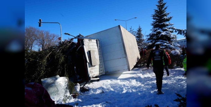 Erzurum’un Yakutiye ilçesi Fatih Sultan Mehmet Bulvarı’nda, Üniversite Kavşağı yönüne giden bir kamyon sürücüsü, henüz bilinmeyen bir sebeple hızını alamayarak kaldırımı aşıp refüje çıktı. Refüjü aşan kamyonet ön kısmından ağaca çarparak devrildi. Çarpma sonucu ağaç da kökünden söküldü. 38 AHM 800 plakalı yüksüz araçta, şoförle birlikte 3 kişi daha çıktı. Yaralılardan birisi ambulansla Erzurum Şehir Hastanesi’ne kaldırıldı. Olay yerine çok sayıda sağlık ekibi, itfaiye, AFAD ve polis ekibi yönlendirildi. Ekipler devrilen kamyonun altında kimsenin kalıp kalmadığını kontrol etti.