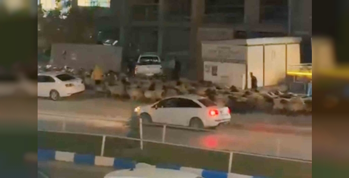 Hakkari’nin Yüksekova ilçesinin en işlek caddesinden koyun sürüsü geçtiği sırada ilginç görüntüler oluştu.