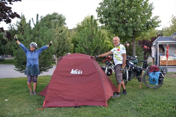 Duygu Kırkıcı ise eşiyle 9 yıldır sürekli bisiklet kullandıklarını ve ülkenin güzelliklerini tanımak için turlara çıktıklarını dile getirdi.