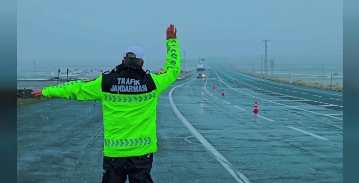 Çat uygulama noktasında araçların lastik derinliklerini ölçen ekipler, sürücüleri gizli buzlanma konusunda uyardılar.