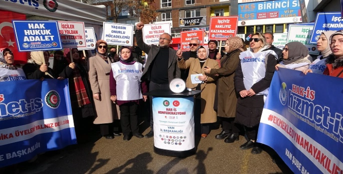 Açıklamasında yerel ve ulusal tüm yetkililere çağrıda bulunan Ayhan, “Üyelerimizin haklarını iade edin ve Van'ın öz evlatlarına karşı olan sorumluluğunuzu yerine getirin. Bizler, her bir kadın ve erkek üyemizin sesi olacağız, hiçbir haksızlığa boyun eğmeyeceğiz. Kadın emeğine, toplumsal cinsiyet eşitliğine ve çalışma barışına verdiğiniz önemi gösterecek şekilde, üyelerimizin işe iade edilmeleri ve mağduriyetlerinin son bulması için bir çözüm üretmenizi istiyoruz. Biz Hizmet-İş Sendikası Kadın Komitesi olarak, kadın dayanışmasıyla emekçilerimizin yanındayız” ifadelerine yer verdi.