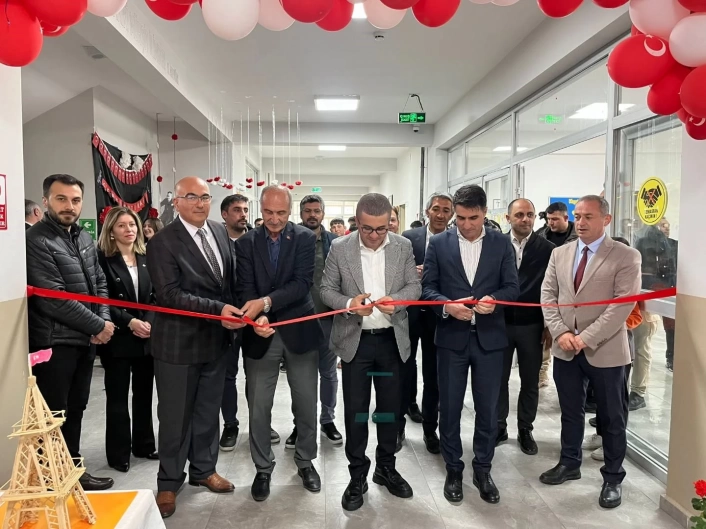 Kağızman Yatılı Bölge Ortaokulunda, öğrencilerin yıl boyunca hazırladığı resim ve teknoloji tasarım çalışmalarının yer aldığı yılsonu sergisinin açılışı ya