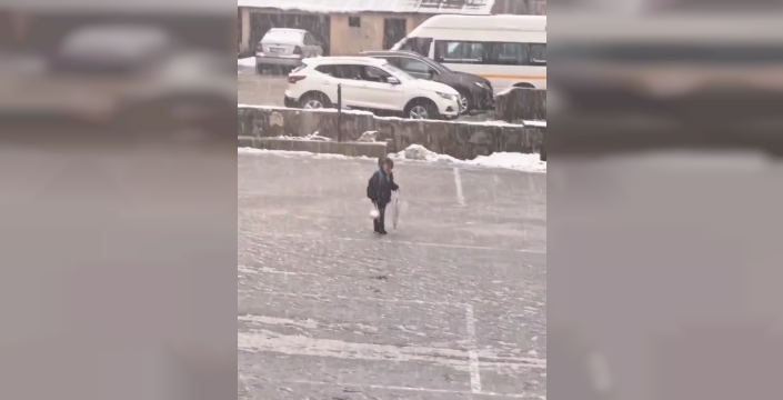 SERHED HABER- Bitlis’in Mutki ilçesindeki Atatürk İlkokulu’nda kaydedilen görüntülerde, soğuk havaya ve kar yağışına aldırış etmeden İstiklâl Marşı’nı coşkuyla söyleyen çocuğun o anları izleyenleri duygulandırdı.