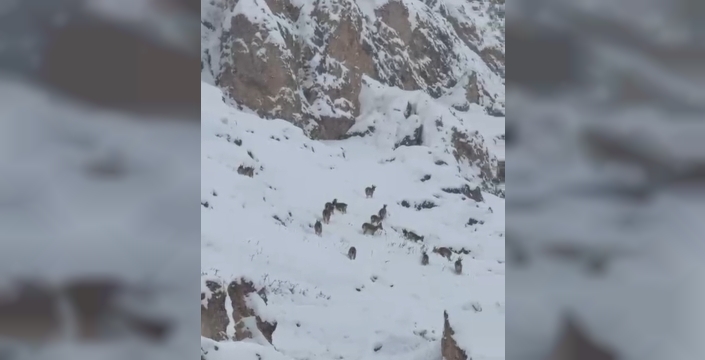 Sarp kayalıklarda ilerleyen dağ keçileri, kış şartlarına rağmen doğayla uyum içindeki yaşamlarıyla dikkat çekti. O anlar cep telefonu kamerası ile kaydedildi.