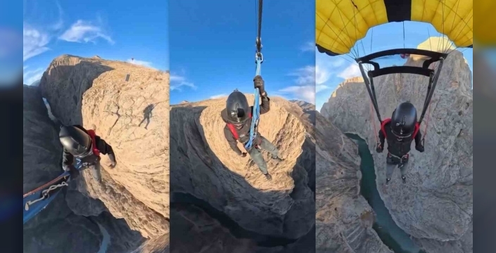 Erzincan’ın Kemaliye ilçesinde bulunan ve dünyanın en yüksek kanyonları arasında yer alan Karanlık Kanyon, adrenalinin zirveye çıktığı bir gösteriye sahne oldu. Yaklaşık 550 metre yükseklikte gerçekleştirilen base jump atlayışında wingsuit ve base jump sporcusu Cengiz Koçak, izleyenlere unutulmaz anlar yaşattı.