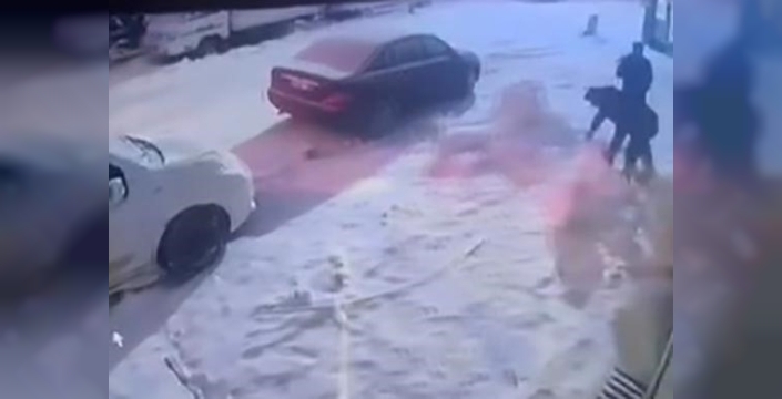 Elazığ’da üç kişi kardan adamı yıktı, şahıslardan biri kafa attı. O anlar güvenlik kamerasına yansıdı.