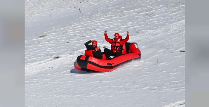 Macera severler, kente yaklaşık 20 km uzaklıktaki Söğütlü köyünde kar üzerinde off-road ve rafting yaptı. Vali Çiftçi ve Macera Off-Road Doğa Sporları ekibi, normal şartlarda azgın nehir sularında yapılan raftingi bu defa Erzurum’un karlı dağlarında botla kar üzerinde yaptı. Metrelerce yüksekten botla aşağı inen macera tutkunları zaman zaman adrenalin dolu anlar yaşadı.