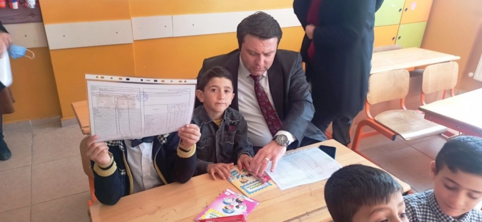 Sınıfları gezerek çocuklarla bir süre sohbet eden Ocak, karne ve karne hediyelerini dağıttıktan sonra, onlarla hatıra fotoğrafı da çektirdi.