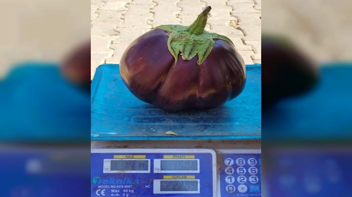 SERHED HABER- Kemaliyenin Çakırtaş köyünde çiftçi Yavuz Erol, 1 kilo 422 gram ağırlığında patlıcan yetiştirdi.