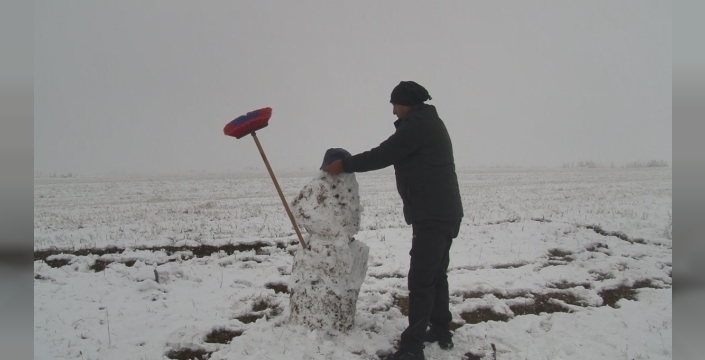 SERHED HABER- Kars’a mevsimin ilk karı düştü. Son günlerde etkili olan soğuk hava ve yağışlar, özellikle yüksek kesimlerde yerini kar yağışına bıraktı. Kar yağışından dolayı etraf beyaza bürünürken, bir vatandaş kar yağışı altında kardan adam yaptı.
