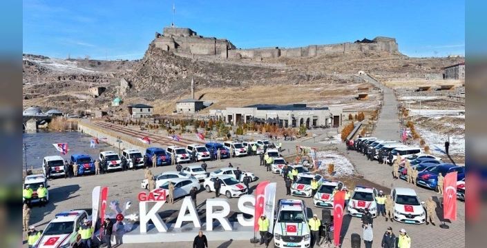 Kars’a gönderilen 60 araçtan 41’i İl Emniyet Müdürlüğü ve 19’u da Jandarma Komutanlığı verildi. Yapılan konuşmaların ardından araçların anahtarları sürücülerine teslim edildi. Yeni araçlarla daha sonra kortej halinde Bedesten bölgesinden ayrıldı.