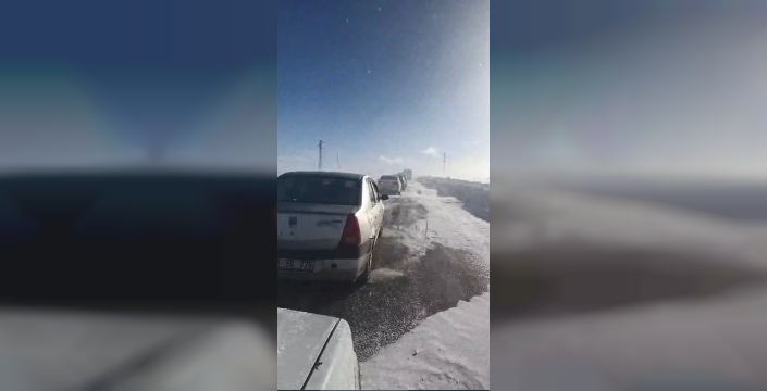 Kars’ta şiddetli tipi nedeniyle Kars-Göle karayolunda onlarca araç yolda mahsur kaldı.