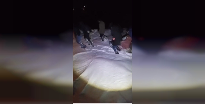 Kars’ta rahatsızlanan 85 yaşındaki kadın, yolun kar nedeniyle kapalı olması nedeniyle yakınları tarafından ip bağlanan leğenle yaklaşık 2 kilometre taşındı. Yaşlı kadının zorlu şartlarda ambulansa ulaştırıldığı anlar kameraya yansıdı.