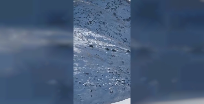 Kars’ın Akyaka ilçesine bağlı Küçükdurduran ve Sulakbahçe köylerinde sabah erken saatlerde ortaya çıkan domuz sürülerinin, koşarak karlı arazide ilerlediği görüldü. Domuz sürüleri Tokay Kurtbaş ve Mahsuncan Işık, tarafından cep telefonu kameralarıyla kaydedildi. Görüntülerde, kalabalık domuz sürüsünün karla arazilerde ve dağlık bölgede hızla kaçtığı anlar yer aldı.