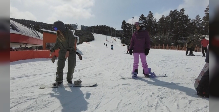 Havadan görüntülenen kayak merkezinde, beyaz örtüyle kaplı sarıçam ormanları kartpostallık görüntüler oluşturdu. Doğal güzelliğiyle dikkat çeken bölgede, pistlerde kayak ve snowboard yapan tatilcilerin yoğunluğu dikkat çekti.