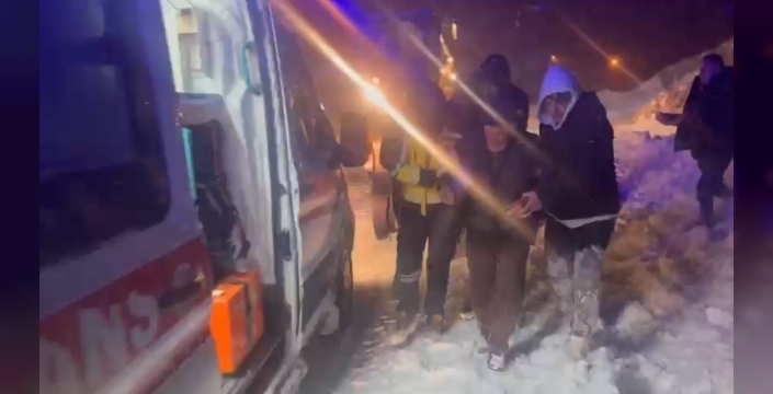Kar kalınlığının yer yer bir metreyi aştığı bölgede, ekipler hasta bir vatandaşı hastaneye ulaştırmak için saatlerce mücadele verdi.