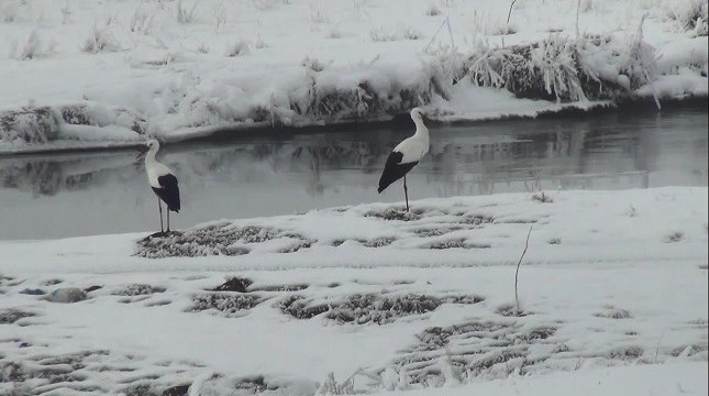SERHED HABER - Kars Çayı'nın kenarında eksi 15 derece soğukta bölgeden ayrılmayan leylekler, çevredeki vatandaşların dikkatini çekti.