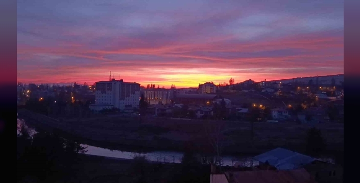 Kızıla bürünen bulutlar güneşin tam olarak batmasıyla birlikte kentin üzerinden çekildi. O anlar anbean kaydedildi. Öte yandan Kars’ın temiz havası ve coğrafi konumu, bu tür manzaraların sıkça yaşanmasına imkan sağlıyor.