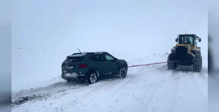 Kars’ın Arpaçay ilçesinde seyir halindeki bir araç, yoğun karla kaplı yolda ilerlediği sırada kayarak yol kenarında oluşan kar birikintisine saplandı. Sürücünün durumu bildirmesi üzerine Özel İdare karla mücadele ekipleri harekete geçti. Bölgeye sevk edilen iş makinesiyle mahsur kalan araç bulunduğu yerden kurtarıldı.