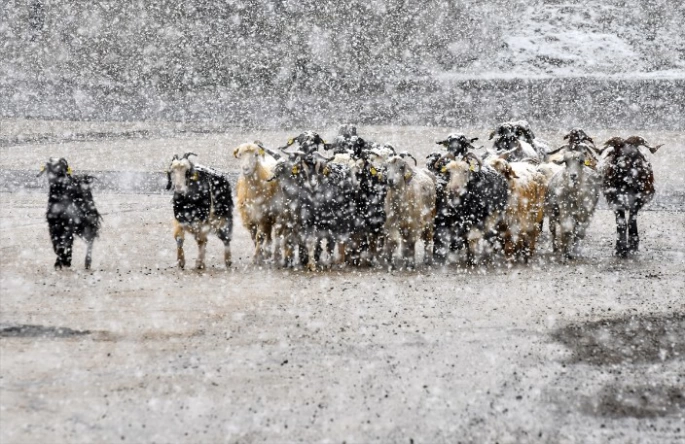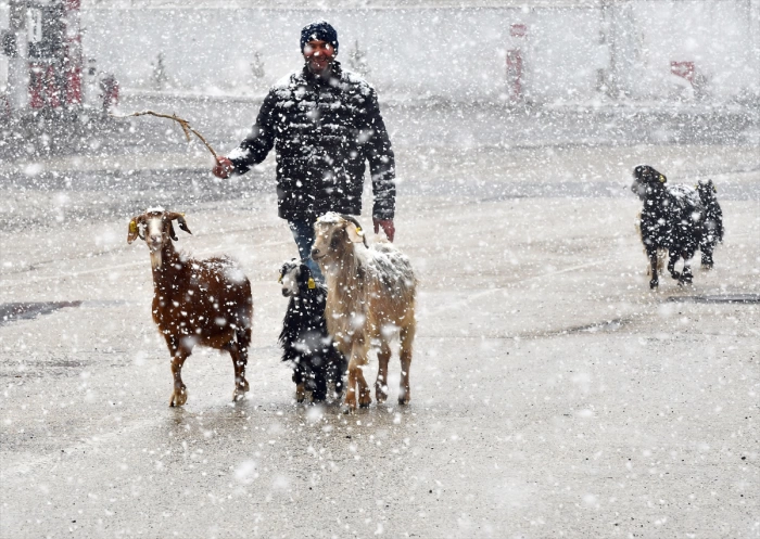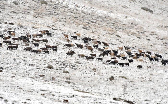 Çobanlardan Şeref Yıldız AA muhabirine, kar yağışının birden başladığını belirterek, "Arazideydik kar yağınca mecburen keçilerimizi ilçeye getirdik." dedi.