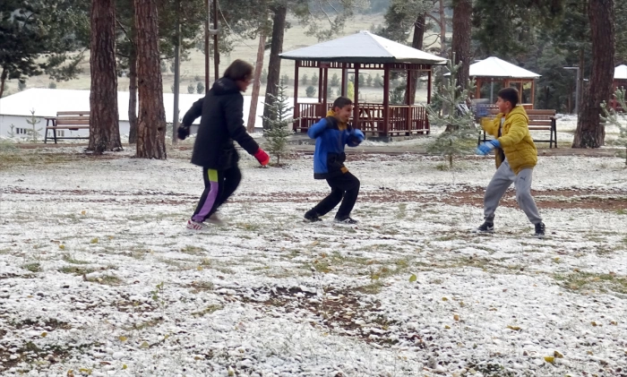 Kar yağışını fırsat bilen çocuklar ise millet bahçesinde kar topu oynamanın keyfini çıkardı.