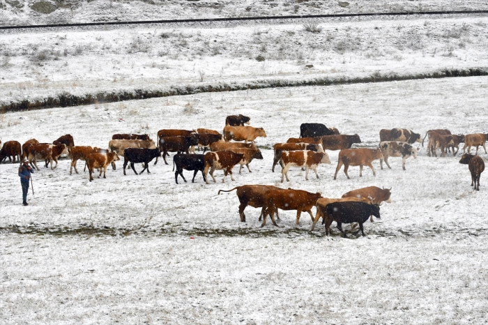 İsli mağara bölgesinde ise hayvan otlatan besiciler, aşırı kar yağışı nedeniyle hayvanlarını ilçeye geri getirmek zorunda kaldı.