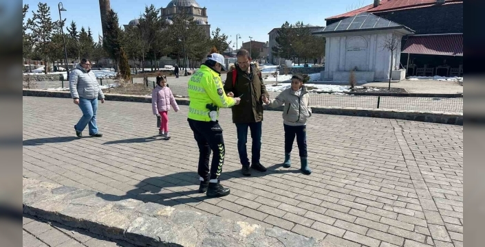 Kars’ta trafik tedbirleri kapsamında vatandaşlara yönelik bilgilendirme yapıldı.