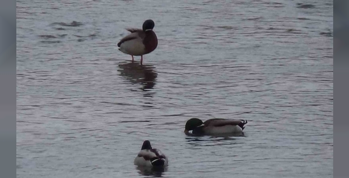 Kars Çayı’nın buz tutmayan bölümlerinde görülen ördekler, çevredeki vatandaşların ve objektiflerin ilgi odağı oldu.